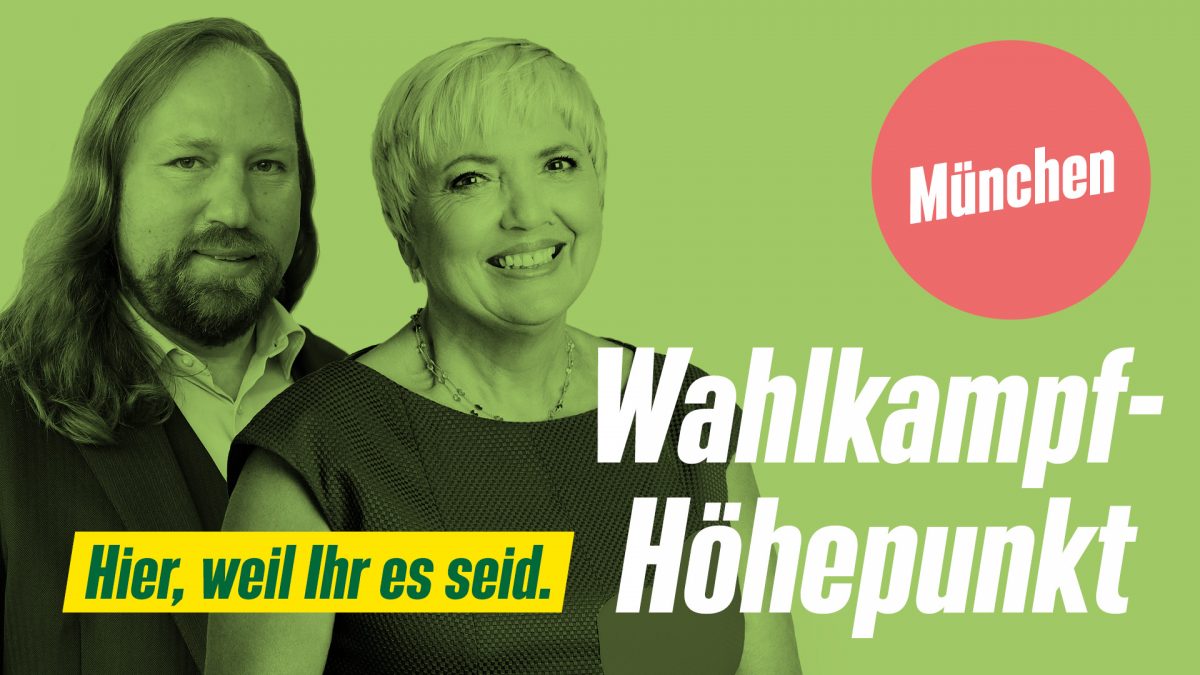 Sei auf dem Königsplatz dabei und informier dich, was sich mit uns GRÜNEN in der Regierung alles zum Besseren verändern kann. Freu dich auch auf Reden unserer Parteivorsitzenden Eva Lettenbauer und Thomas von Sarnowski, den grünen Direktkandidat*innen für München und Live-Musik von den großartigen DOBA (Donnerbalkan) auf unserer grünen Bühne.